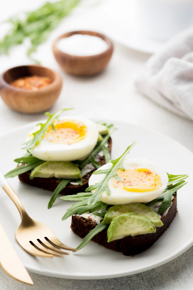 - С вареным яйцом: Разрежьте яйцо пополам и положите сверху по чайной ложке икры. Это идеальный белковый завтрак, который даст сытость на 4–5 часов.