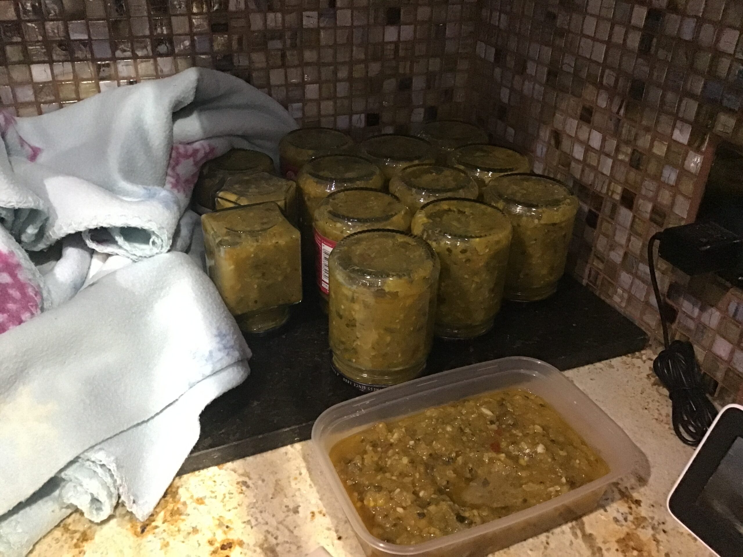 Прикрываем сухими прокипяченными крышками и герметично укупориваем. Банки с аджикой сразу переворачиваем вверх дном и укутываем. Выдерживаем так примерно сутки, до полного остывания.