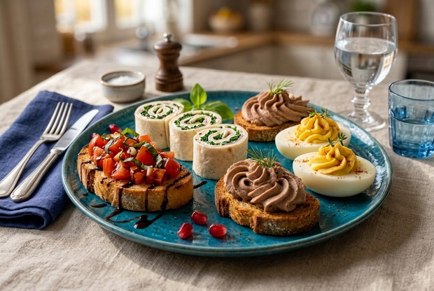 Но помимо закусок еще есть основное блюдо и десерты, поэтому закуски у меня почти всегда на скорую руку из доступных продуктов, которые есть в магазине возле дома.